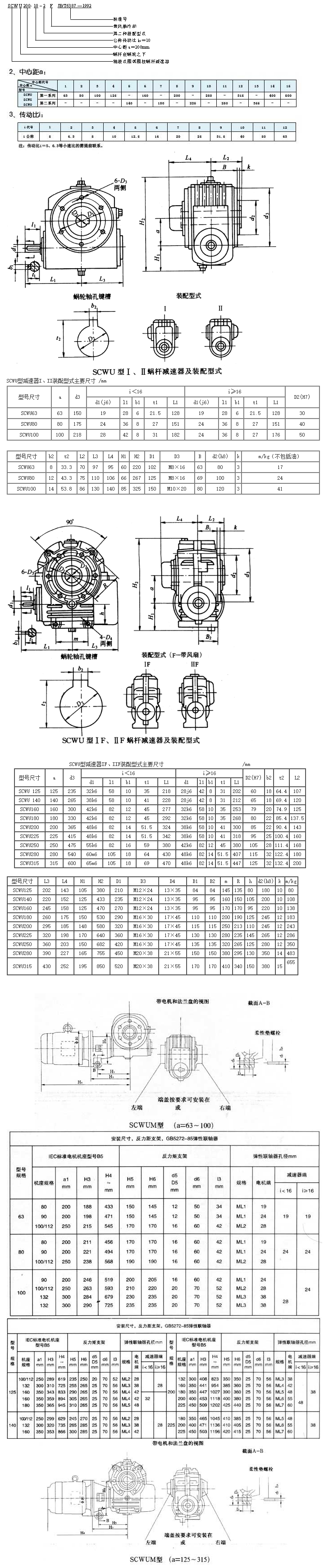 (1)SCWU 型—蜗杆在蜗轮之下型;