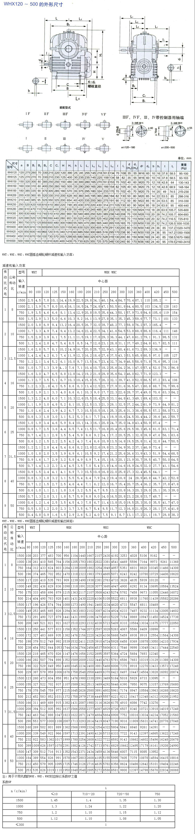 WHX圆弧齿涡轮蜗杆减速机安装型式及尺寸: